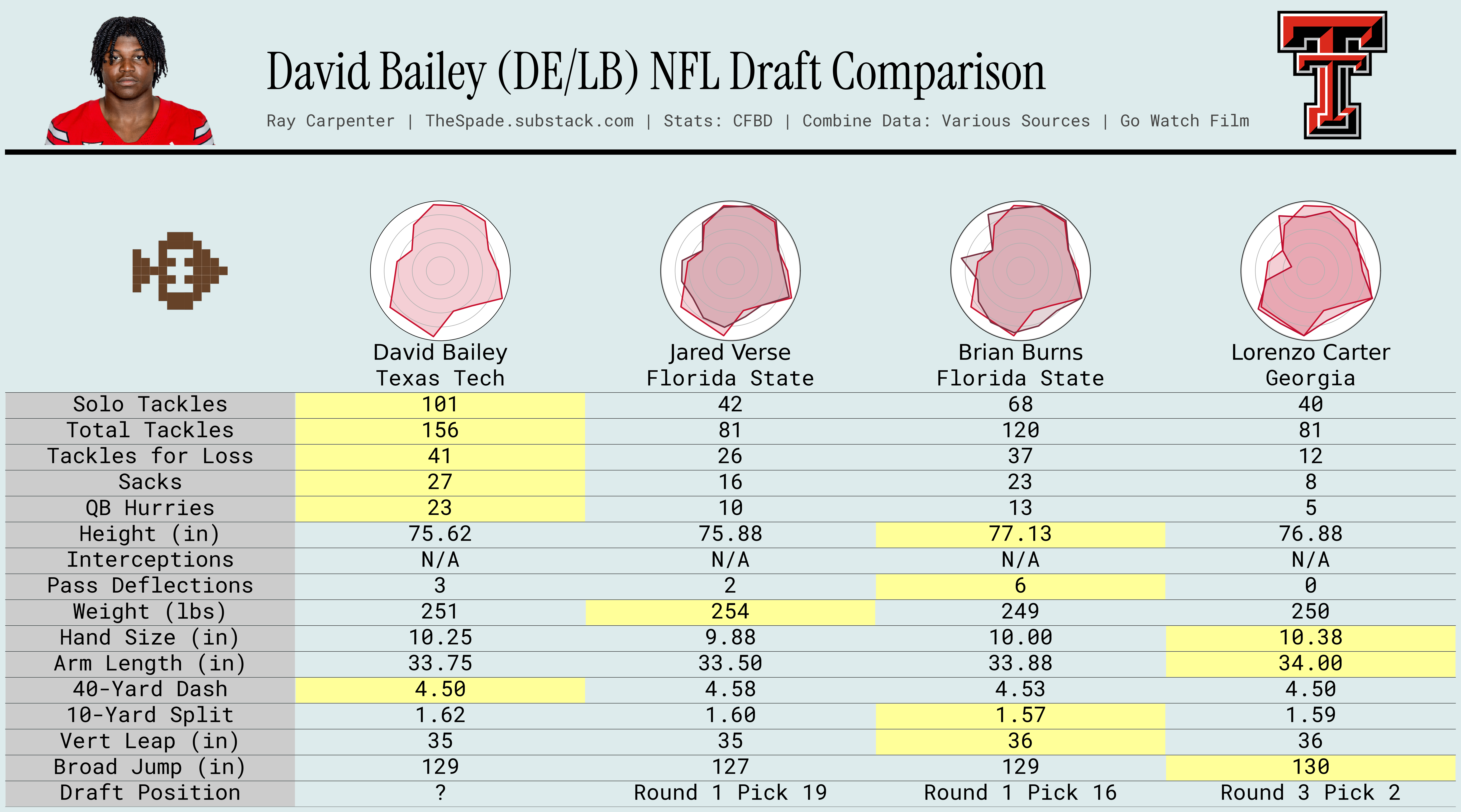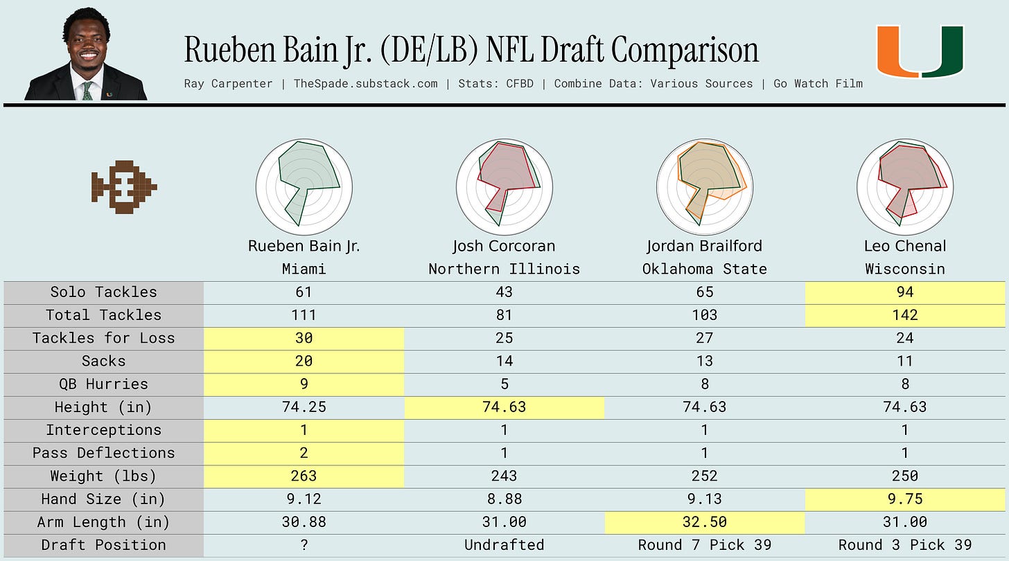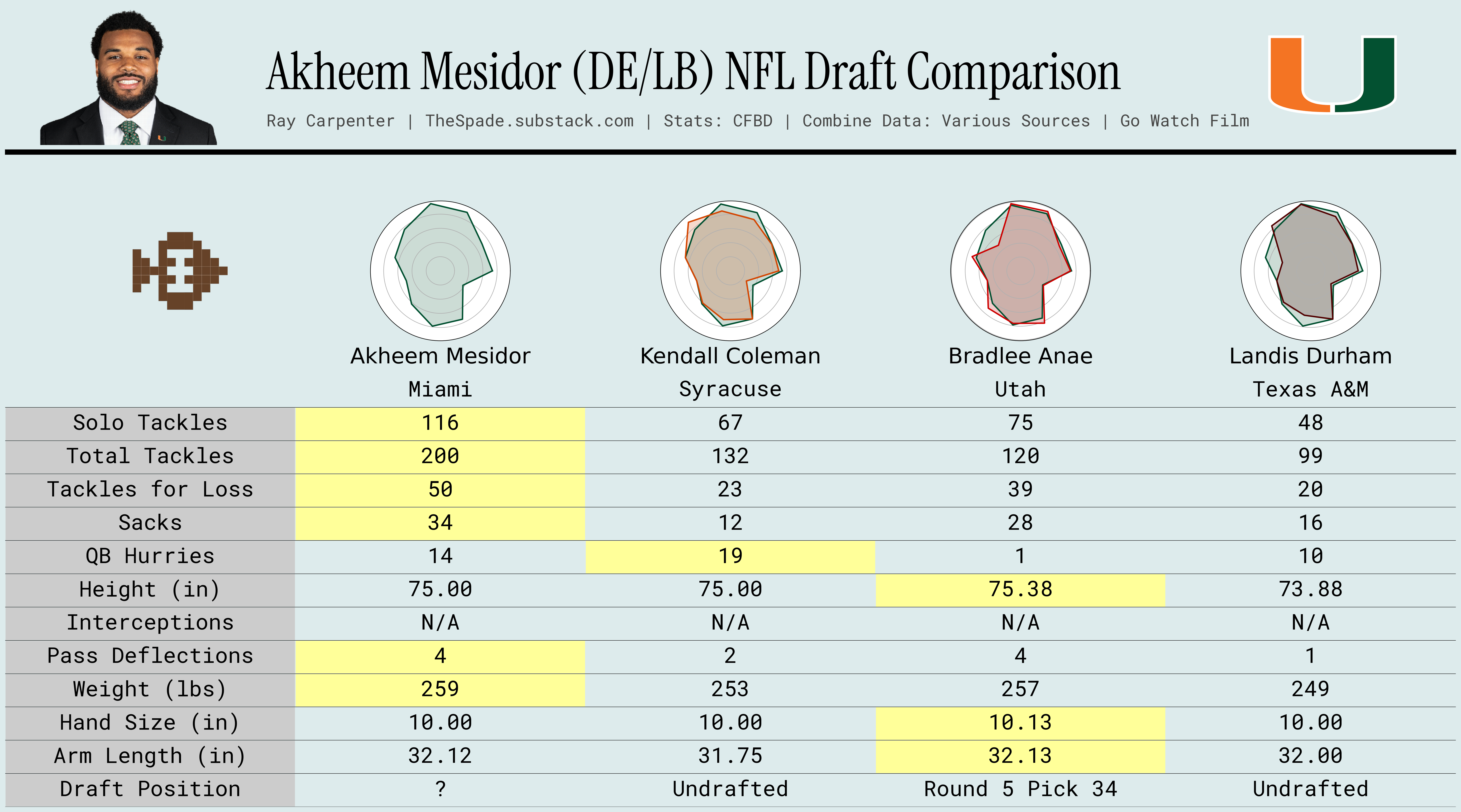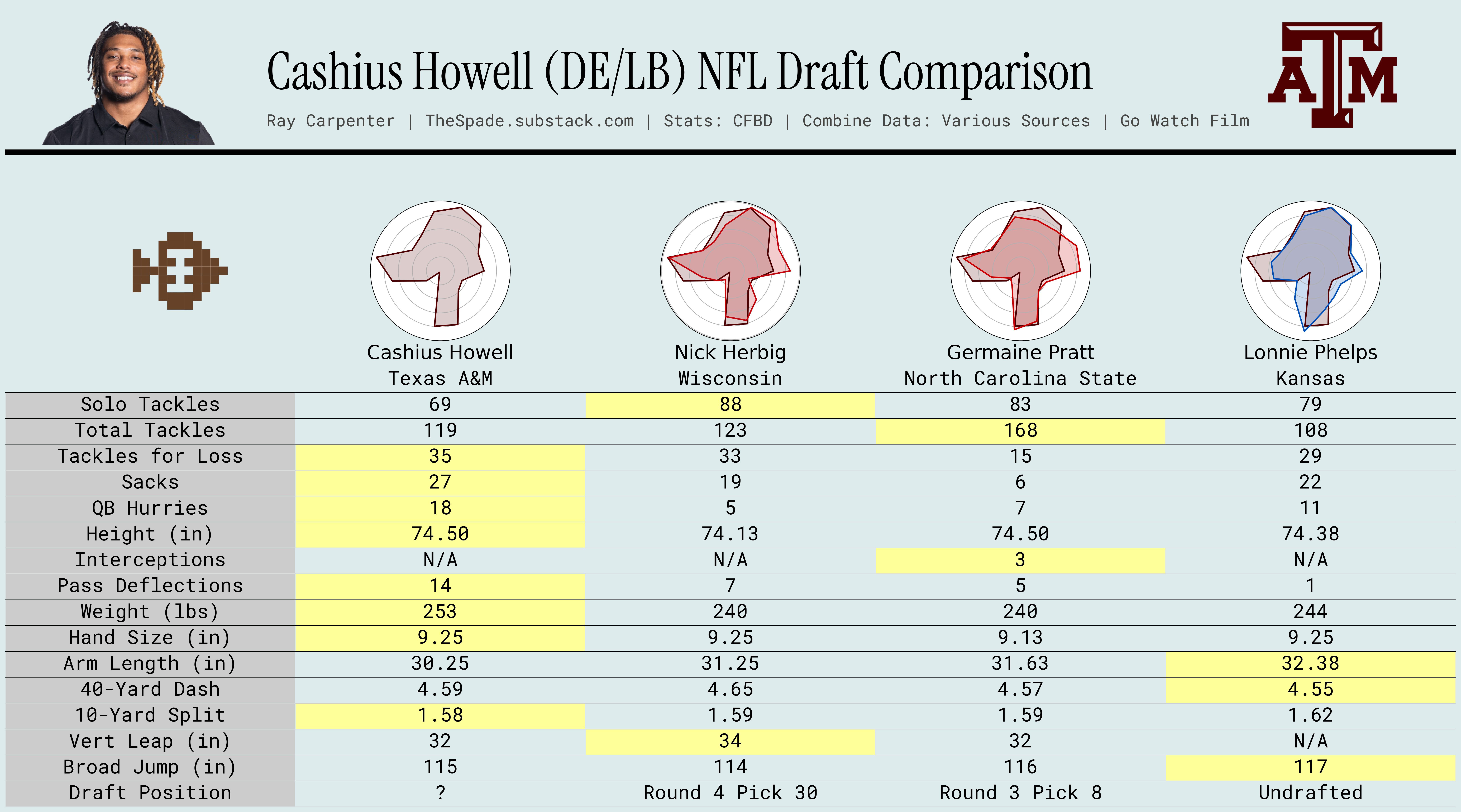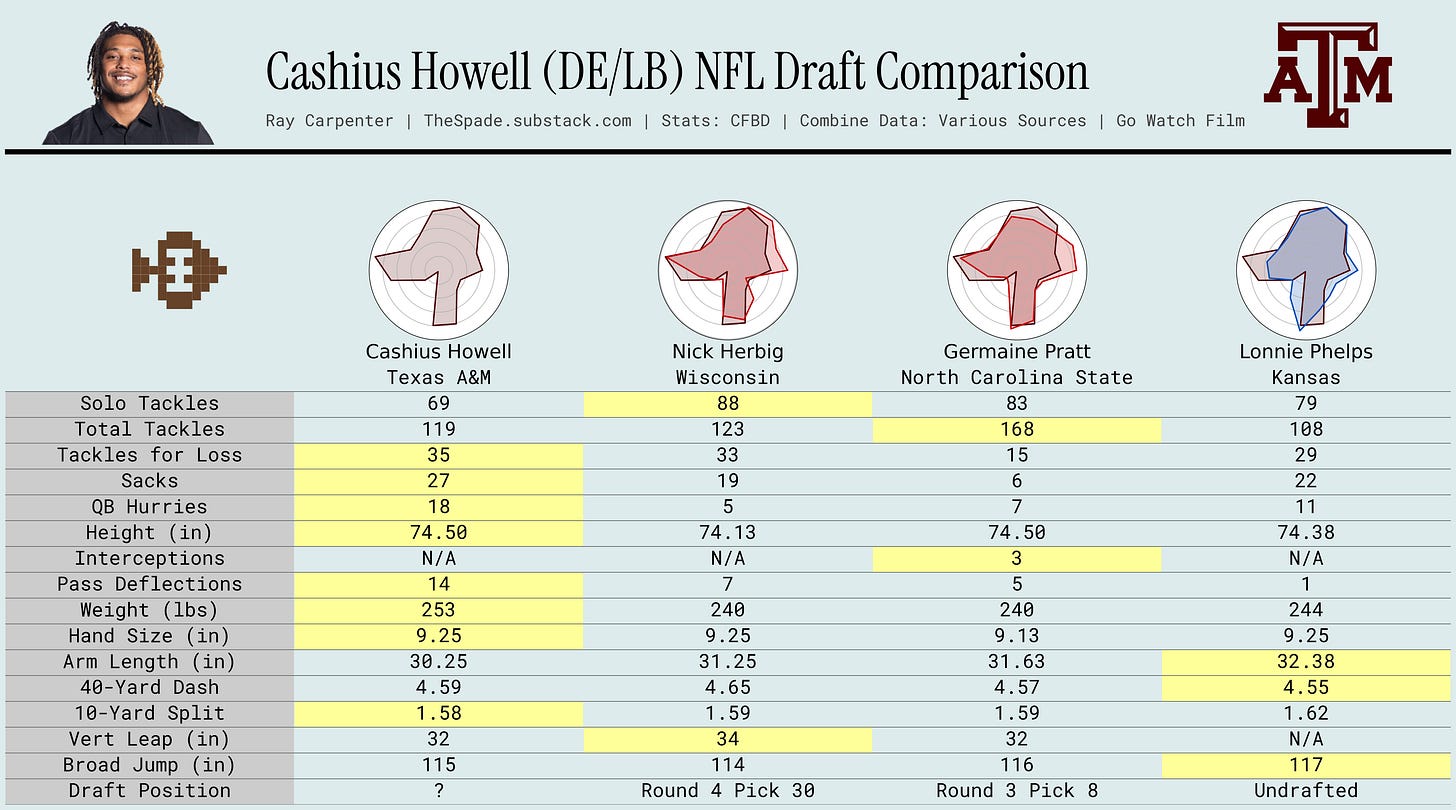 I added the caveat of “Go Watch Film” in the subtitle to offset the wonky comparisons that might pop up, especially for positions like offensive linemen that are more combine measurements based since they don’t have many free stats available online.