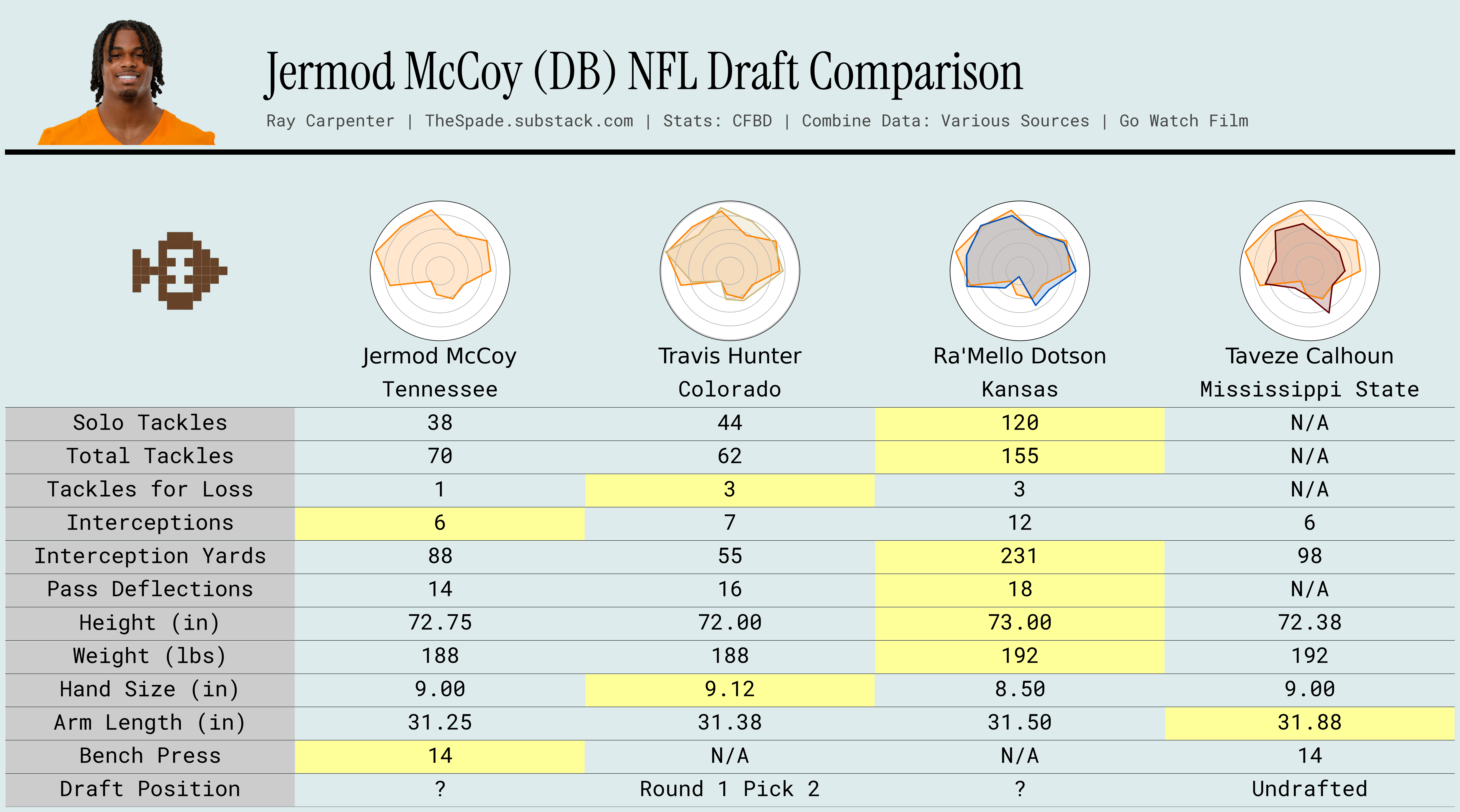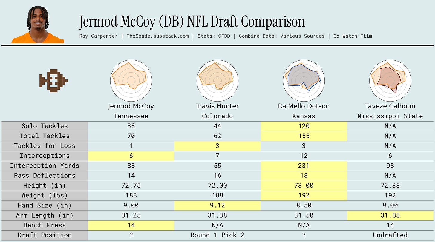 A Travis Hunter comp? The first I’ve seen so far. This is only comparing his CB half of stats though.