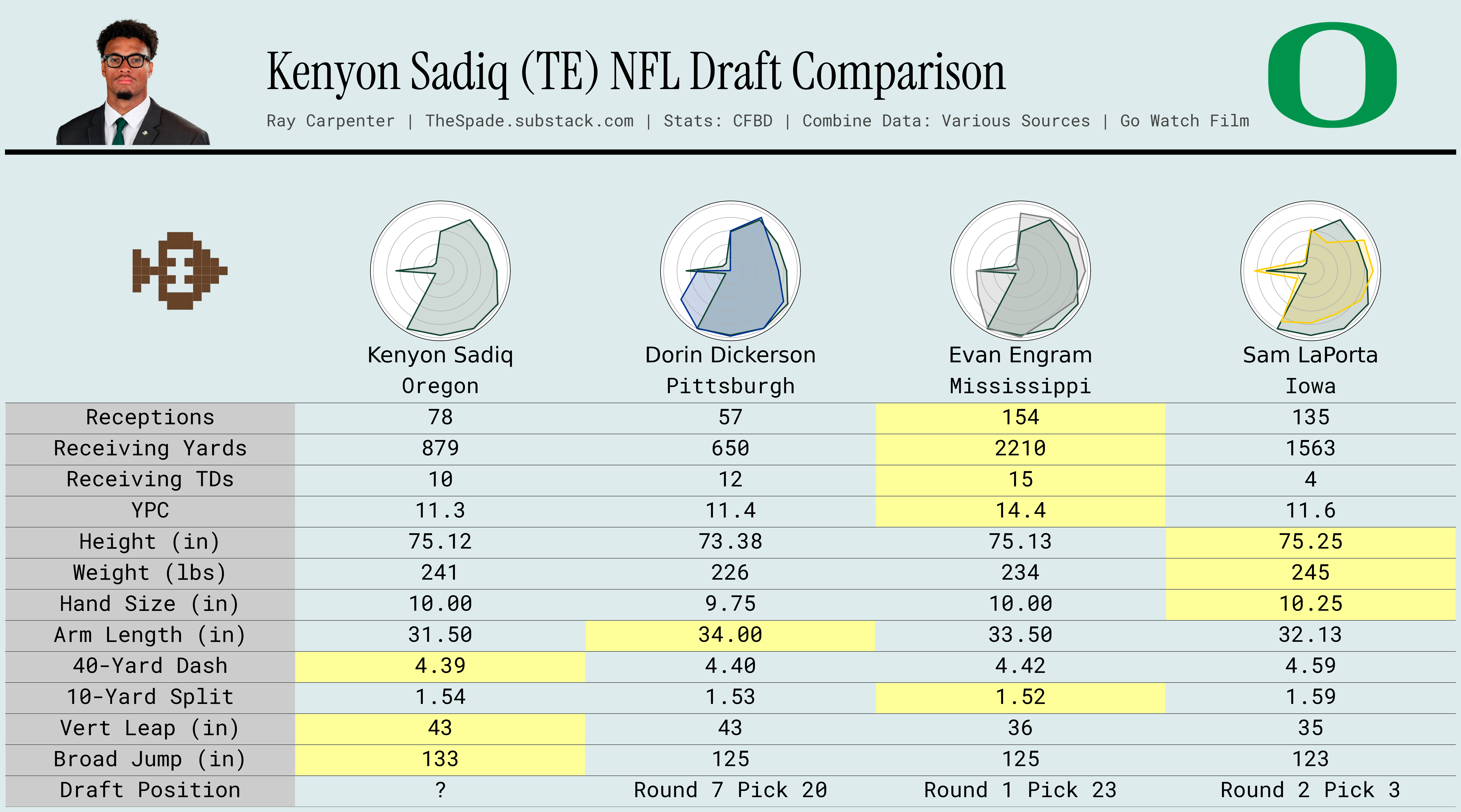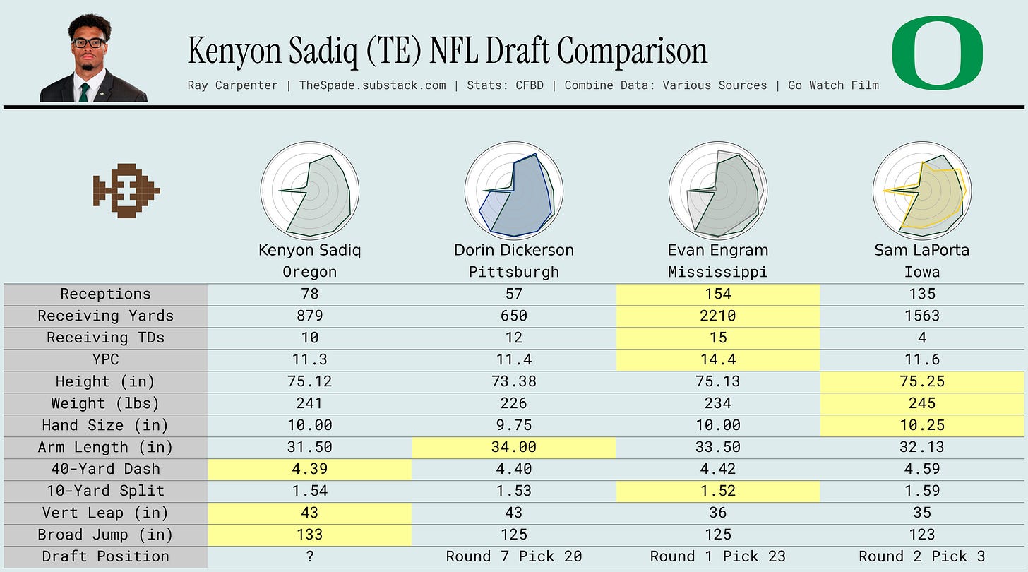 Geno Smith finds his new Brock Bowers here with Oregon TE Kenyon Sadiq. I think this would be very exciting to see.